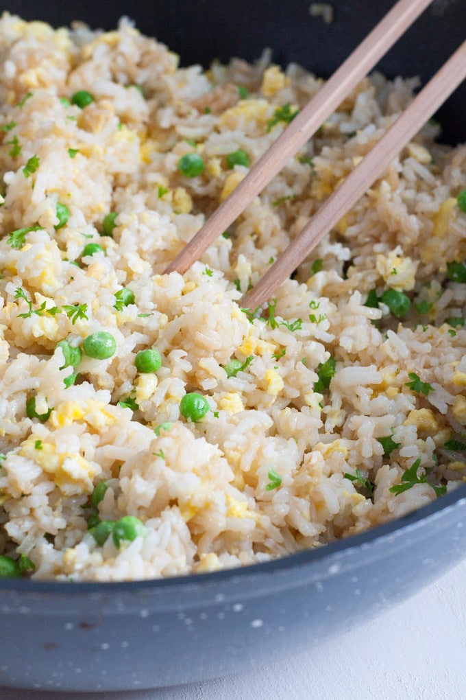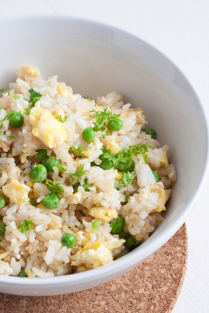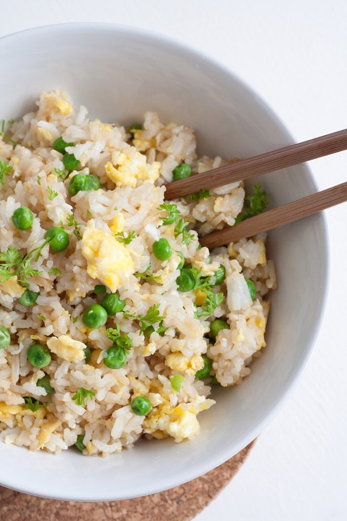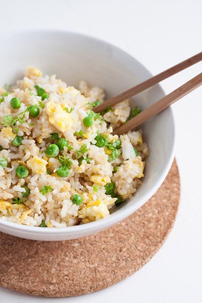 15-Minuten knuspriger Bratreis mit Erbsen + 2 Tipps, die jeder Blogger kennen sollte
