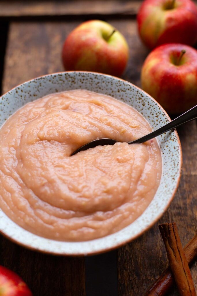 Nachtisch gefällig? Das Beste in der Kita ist bei unserem Lütten IMMER der Nachtisch - kein Wunder! Zuhause versuchen wir leckere Alternativen ohne zusätzlichen Zucker anzubieten. Mit diesem leckeren Apfelmus aus dem Ofen ganz easy. Passt zu Pfannkuchen, Kartoffelpuffern, Milchreis und Co. und wird auch gern ins morgendliche Porridge eingerührt!