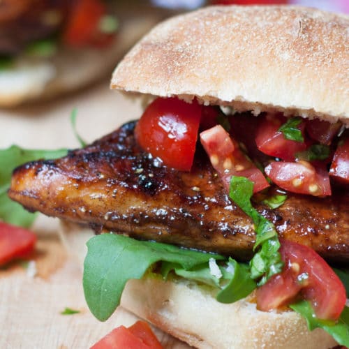 Herzhaft, würzig und schnell gemacht – der Bruschetta Chicken Burger schmeckt nach Sommer. Ruccola, saftiges Balsamicohähnchen und ein Tomatensalat im Bruschetta-Style sind leicht und das perfekte Abendessen für warme Sommertage.