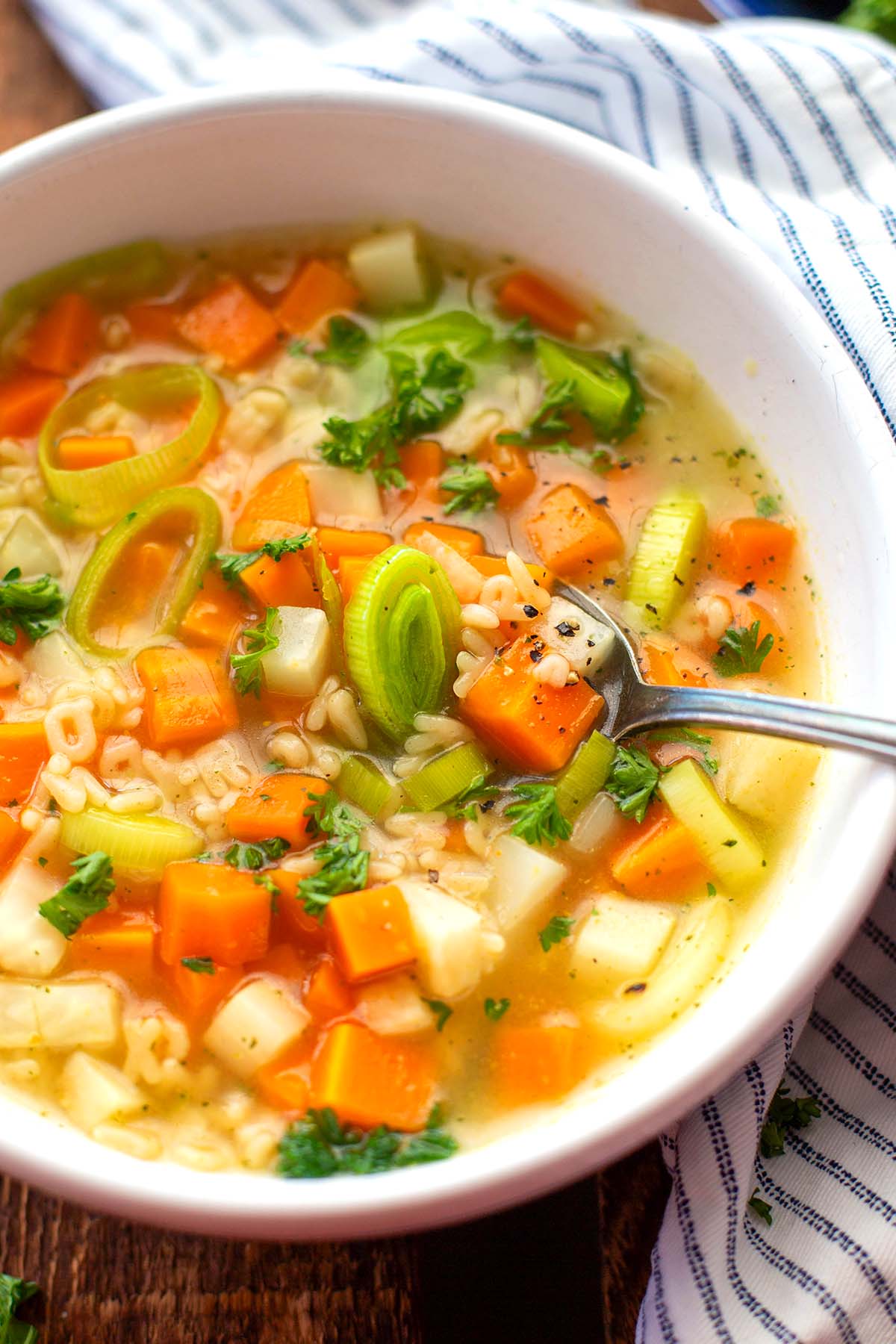 Für die vegetarische Suppe braucht ihr nur ein paar einfache Zutaten, die ihr in jedem Supermarkt bekommt.