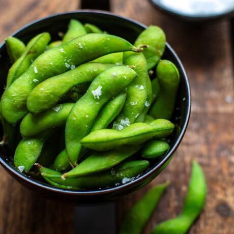 Edamame sind super gesunde, unreif geerntete Sojabohnen. Der Snack ist kalorienarm, aber sehr nährstoffreich und wird im Restaurant oft als Appetizer serviert. Traditionell bekommt ihr dabei die Bohnen noch in der Schale und mit ordentlich Meersalz bestreut.