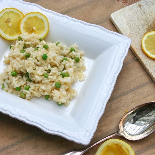 Wieso auch nicht mal mit Spinat, Scampis oder Rucola experimentieren. Ganz besonders lecker und dazu auch noch super einfach ist Erbsen-Risotto mit Zitronen. Die Säure der Zitrone gibt dem Risotto eine angenehme Frische und auch die knackigen Erbsen machen sich wunderbar in Kombination mit dem bissfesten Risotto.