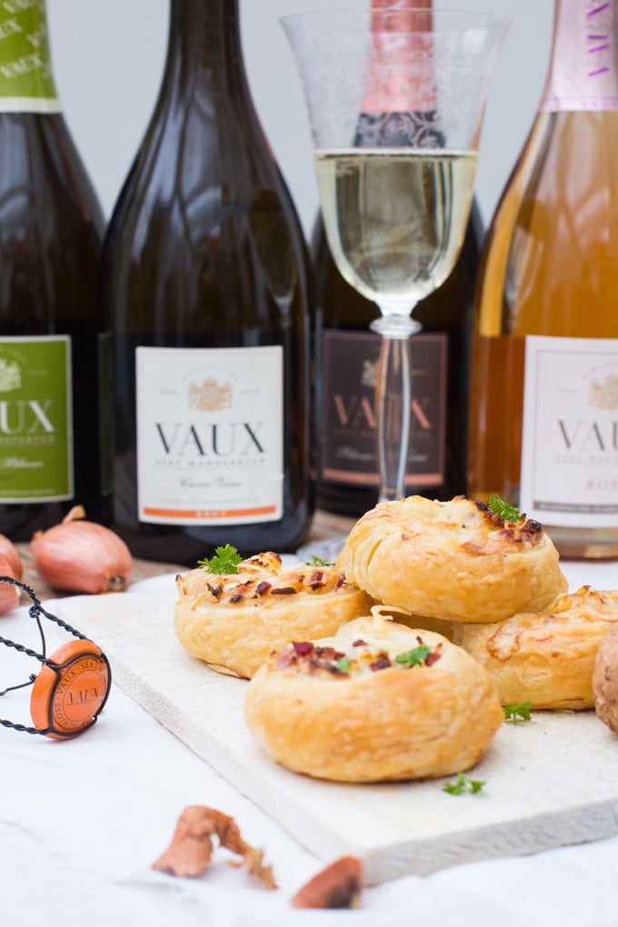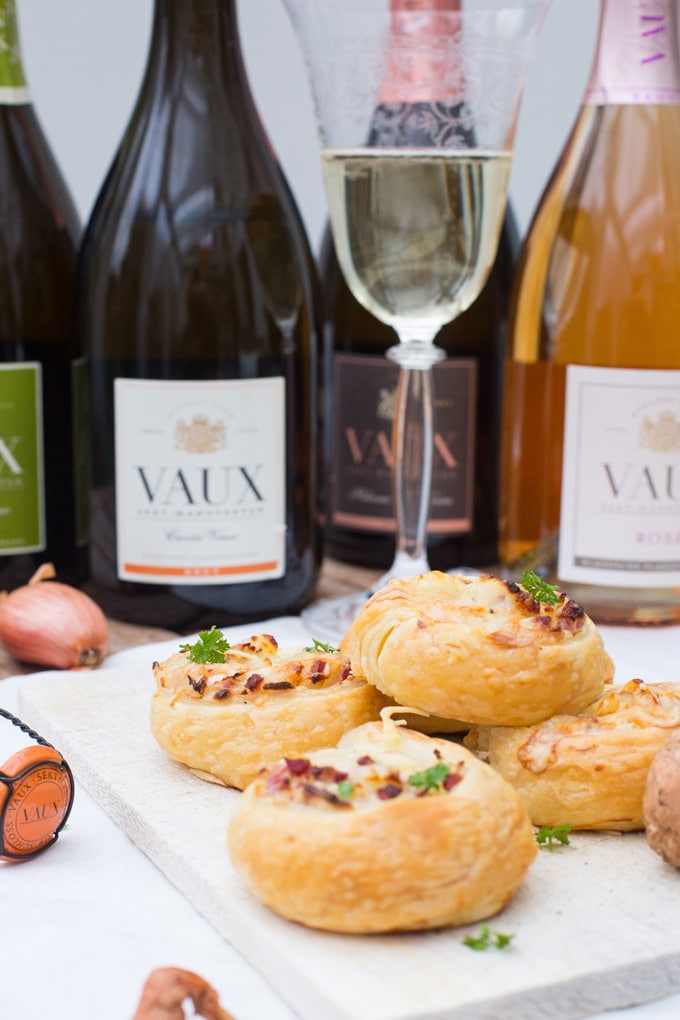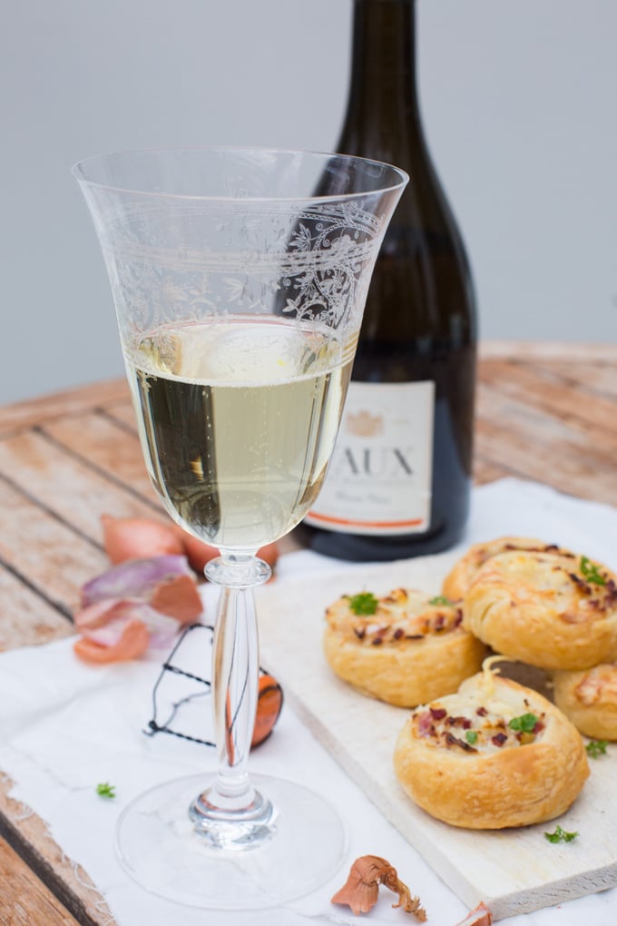 Ich habe mir zu den Flammkuchen-Schnecken ein Gläschen 2012 Cuvée VAUX brut eingeschenkt.