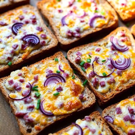 Flammkuchen-Toast mit Speck und Zwiebel ist: