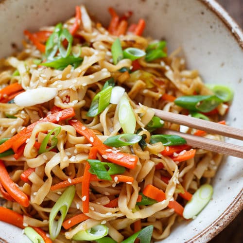 Gebratene Asia-Nudeln! OMG, dieses einfache 20-Minuten Rezept ist ein absoluter Gamechanger! Besser als vom Takeaway, voll mit Gemüse und nur eine Handvoll Zutaten.