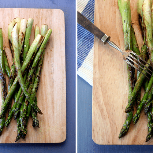 Wenn adrette Spargelstangen ein Bad in Olivenöl nehmen und sich anschließend mit reichlich Knoblauch besprenkeln lassen, ist ein echtes Leckerchen garantiert. Und sieht der Spargel nicht hübsch aus? Außen knusprig, innen weich - perfekt!