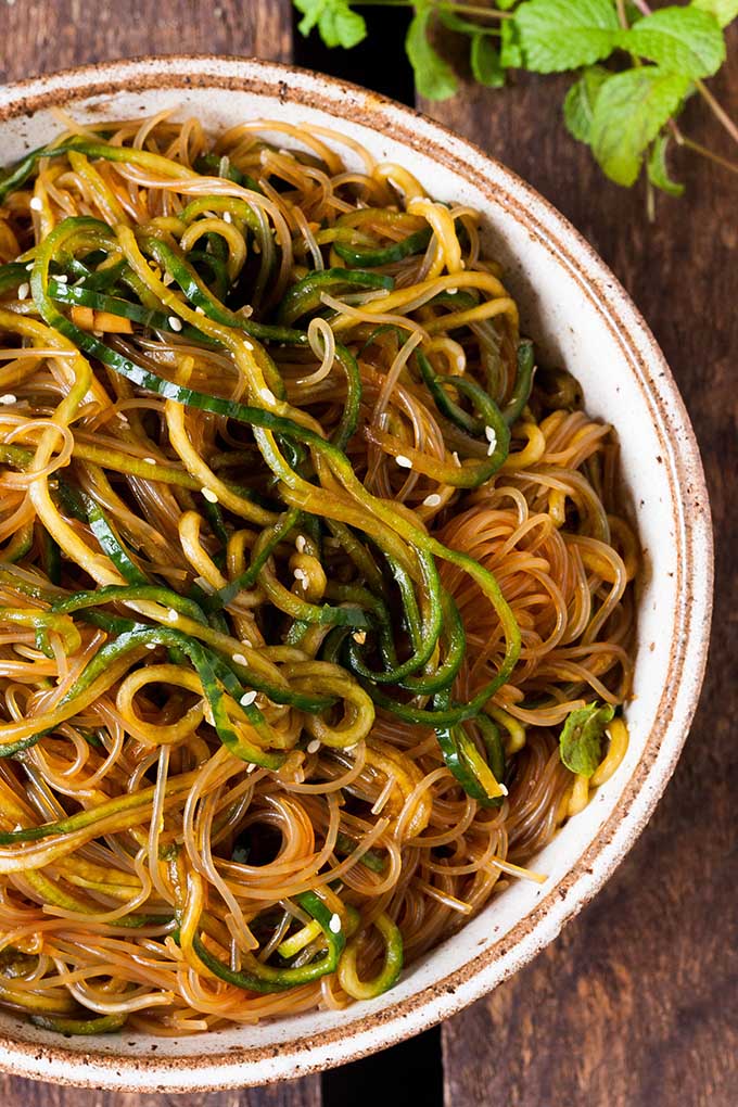 Der Glasnudelsalat mit Gurken-Spaghetti, Sesam und Minze ist:
