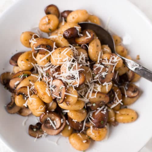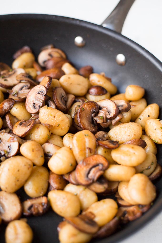 Gnocchi mit Champignons, Parmesan und frischem Rosmarin. Nur sechs Zutaten und 20 Minuten sind nötig. So schnell und lecker!