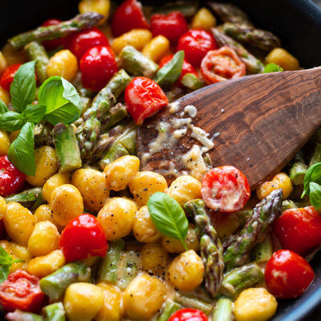 - Vollgepackt mit knackigem grünen Spargel, fruchtigen Tomaten, Gnocchi und cremigster Sauce.