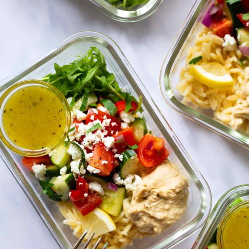 Bestes Beispiel? Der Hummus-Orzo-Meal Prep-Salat! ♡