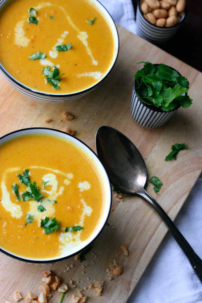 Karotten-Erdnuss-Suppe mit Kokosmilch