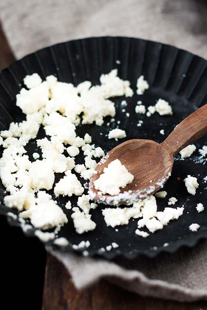 Zerkrümelter Feta für die Karottensuppe mit Feta - Kochkarussell.com