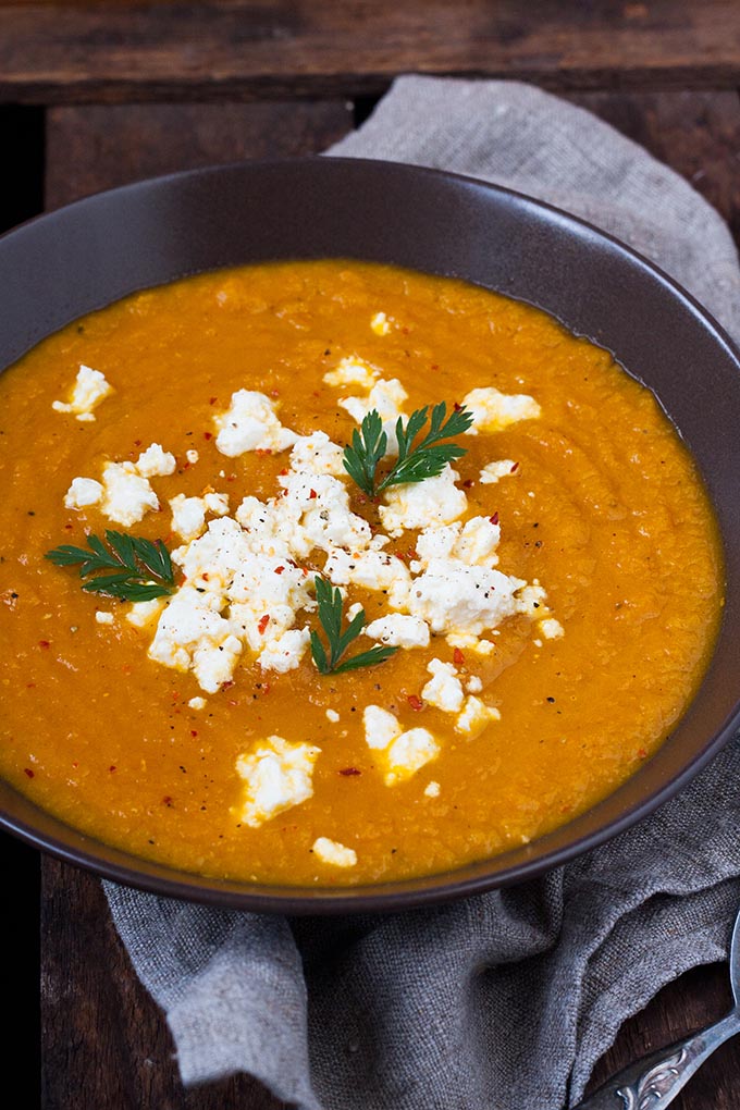 Karottensuppe mit Feta. Super lecker und nur 6 Zutaten. Unbedingt probieren!
