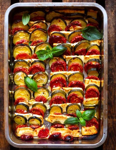 Einfacher Tomaten-Zucchini-Auflauf mit Feta