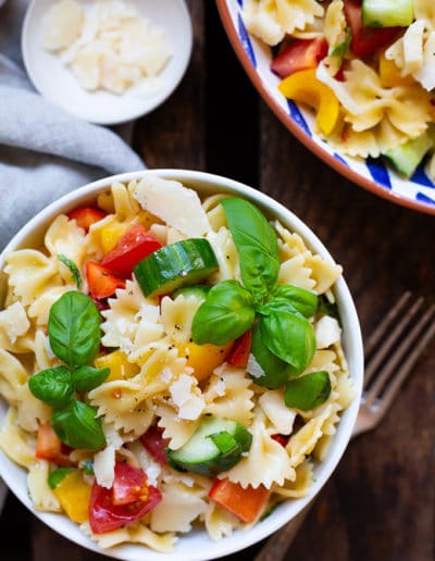 Einfacher italienischer Nudelsalat mit Rucola und Tomaten (20 Minuten!)