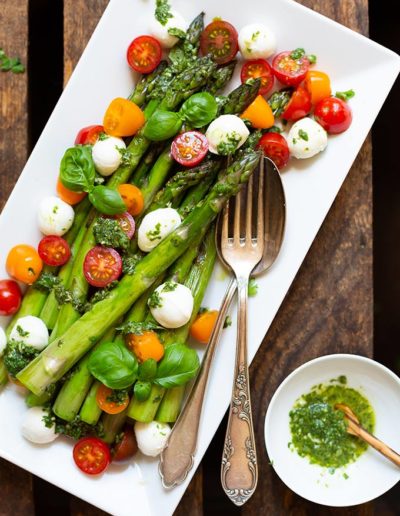 Spargel-Caprese-Salat mit Basilikum-Dressing