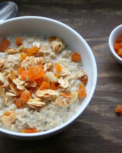 Cremiges Vanille-Porridge mit Aprikosen und karamellisierten Mandeln