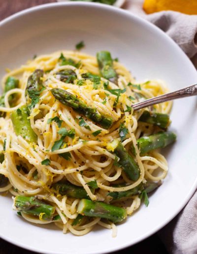 Einfache Zitronen-Parmesan-Spaghetti mit grünem Spargel