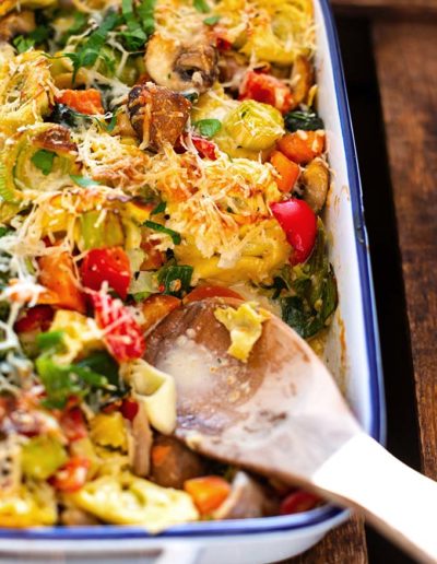 Einfacher Tortellini-Auflauf mit Gemüse und Sahnesauce (veggie!)