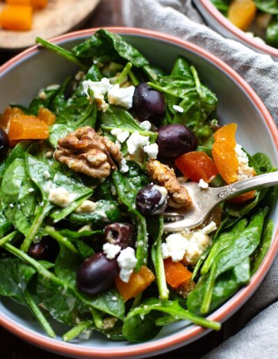 Spinatsalat mit Feta und Honig-Senf-Dressing