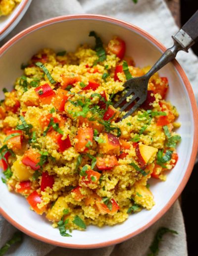 Veganer Couscoussalat mit Pfirsich, Minze und Limetten-Dressing