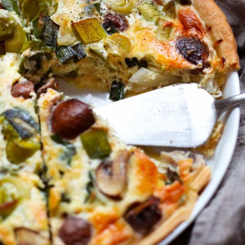 Einfache Lauch-Champignon-Quiche (vegetarisch & nur 6 Zutaten!)