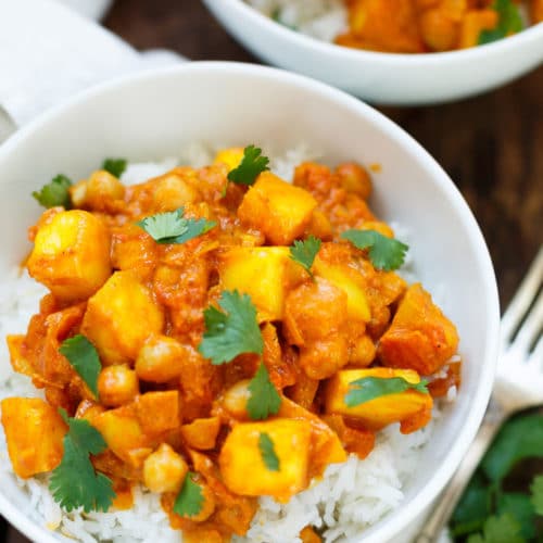 Das Mango-Kokos-Curry mit Kichererbsen ist vegan, einfach und unglaublich cremig!