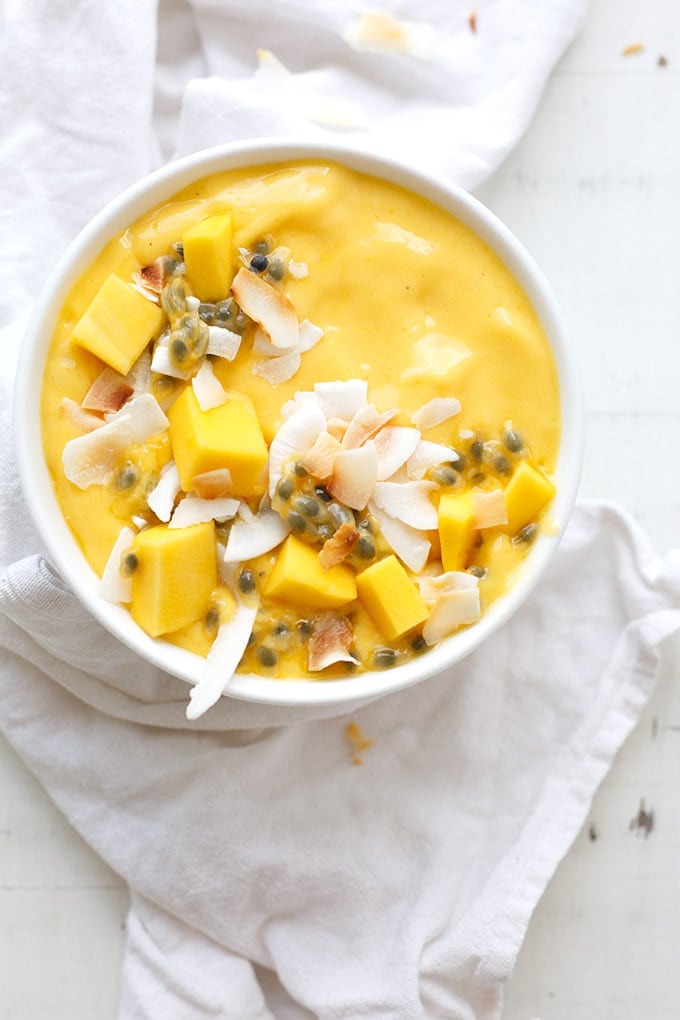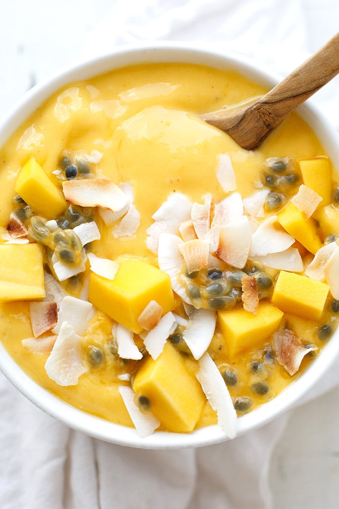 Mango Smoothie Bowl mit Banane und Maracuja ist: