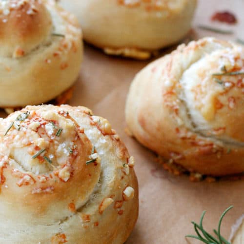 Wo sind die Käsefans? Und wem darf ich ein paar köstliche Parmesan Rosemary Buns rüberschieben?