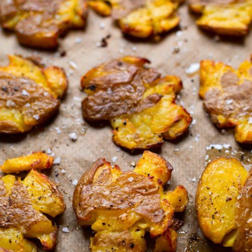 Bis ich die perfekte Kartoffelart gefunden habe: Festkochende Kartoffeln, die im Ofen extraknusprig werden. Seitdem sind Smashed Potatoes nicht mehr von unserem Speiseplan wegzudenken.