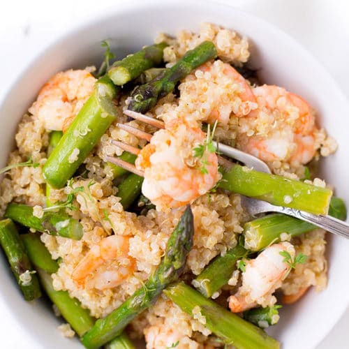 Quinoa mit grünem Spargel und Garnelen