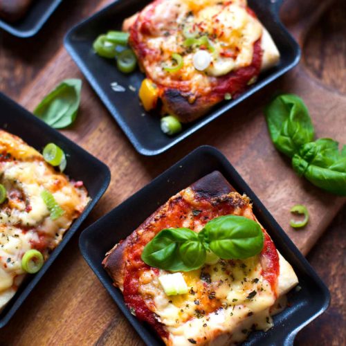 Auf die Idee mit der Raclette-Pizza haben mich übrigens meine Freunde von MILRAM gebracht. Raclette nur an Weihnachten und Silvester ist schließlich viel zu schade, oder? Profitipp: Wir nehmen gerne zwei Pfännchen pro Person. So gibt’s alle 5 Minuten ne neue Mini-Pizza. 😉