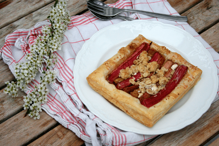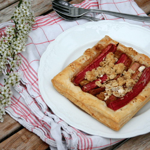 Nach den Rhabarber-Marzipan Gugls und Rhabarberkompott gab es gestern kleine Rhabarber-Tartes mit Zimt und Knusperstreuseln. Und ohhh ja, die Rhabarber-Liebe geht weiter, der Rhabarber schmilzt förmlich in den Blätterteig der Tartes, zusammen mit Zimtzucker und Streuseln eine unwiderstehlich gute Kombination!