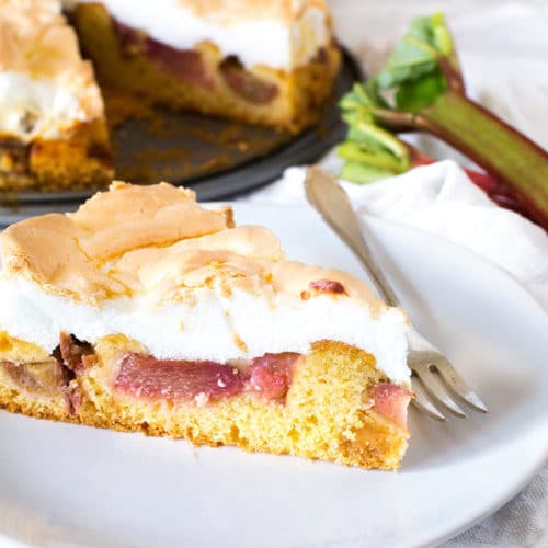 • Absolut, Baiser und Rhabarber MUSS einfach sein. Dazu noch Rhabarber und der Kuchen rettet dir garantiert jeden Tag. 😉