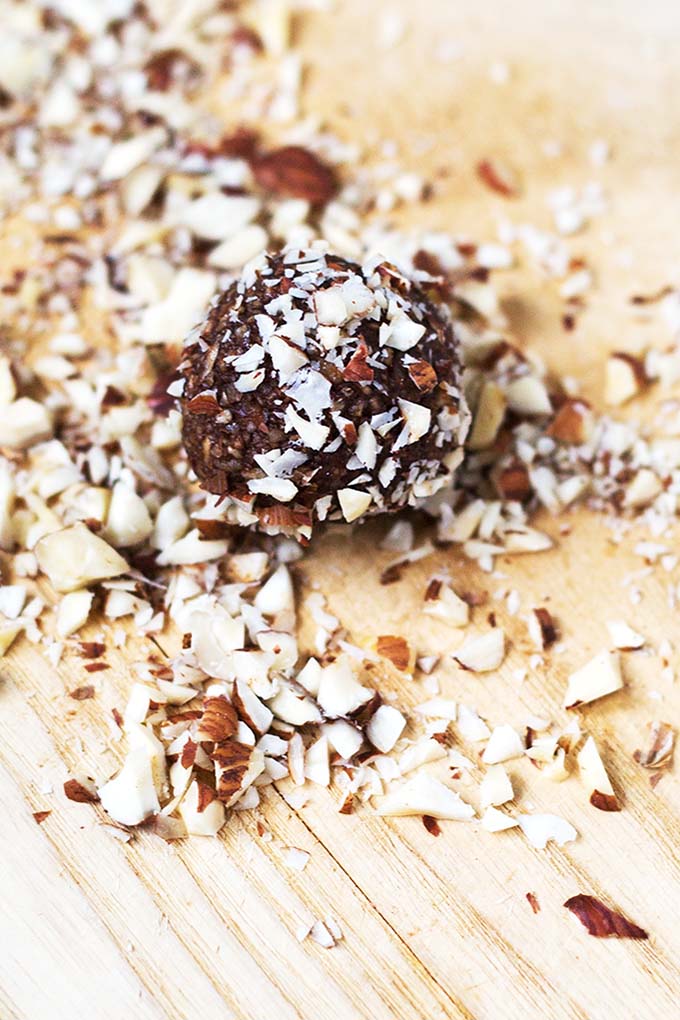 • Zum Schluss nach Geschmack in mehr gehackten Haselnüssen rollen und kurz im Kühlschrank fest werden lassen. Genießen.