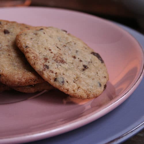 Aus dem Teig walnussgroße Kugeln formen, platt drücken und auf das Backblech legen. Die Kekse für 10-12 Minuten backen, bis sie eine goldene Farbe annehmen. Abkühlen lassen und genießen.
