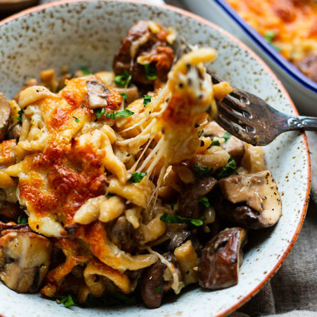 Dieser turboschnelle Auflauf ist vollgepackt mit Spätzle, Pilzen, sahniger Sauce und einer Extraportion Käse. Schnell, super lecker und in 45 Minuten auf dem Tisch!
