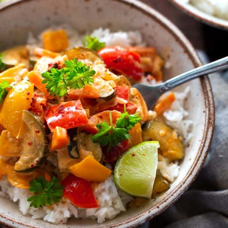 Dieses vegetarische Thai-Gemüse-Curry ist das perfekte Feierabendrezept: Nur 9 Zutaten und in 30 Minuten auf dem Tisch!