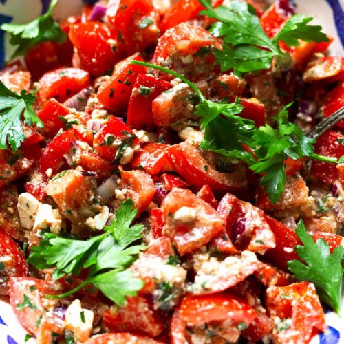 Einfacher Tomatensalat mit Feta und Paprika – So geht’s