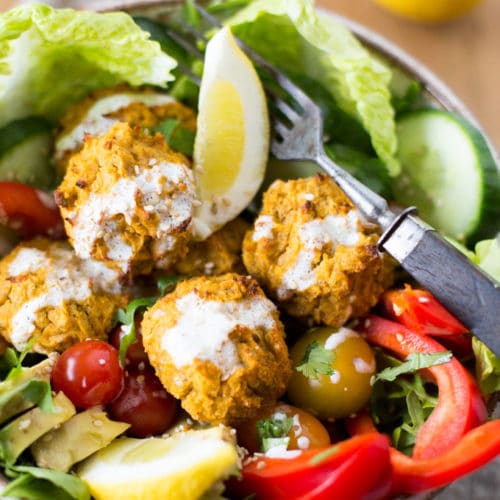• 25 bis 30 Minuten backen, oder bis die Falafel von außen trocken und leicht goldbraun sind.