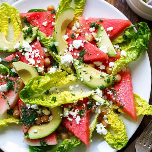 Wassermelonen-Feta-Salat mit Minze und Avocado