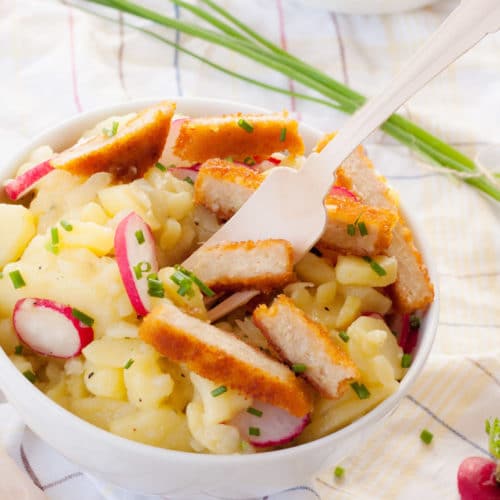 Weltbester Kartoffelsalat mit Rügenwalder Mühle Veggieschnitzel