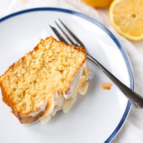 Der Zitronen-Kokos-Kuchen mit zitronigem Creme Fraiche-Topping ist herrlich saftig, zitronig und vollgepackt mit Kokosraspeln und Zitronensaft. So einfach und so gut!